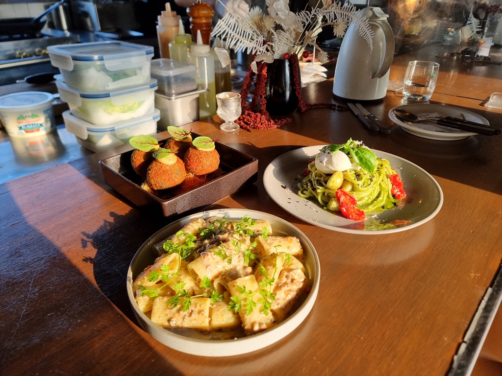 바질 페스토 파스타, 화이트 라구, 오징어 먹물 리소토, 먹물 아란치니 만 먹어봤습니다.