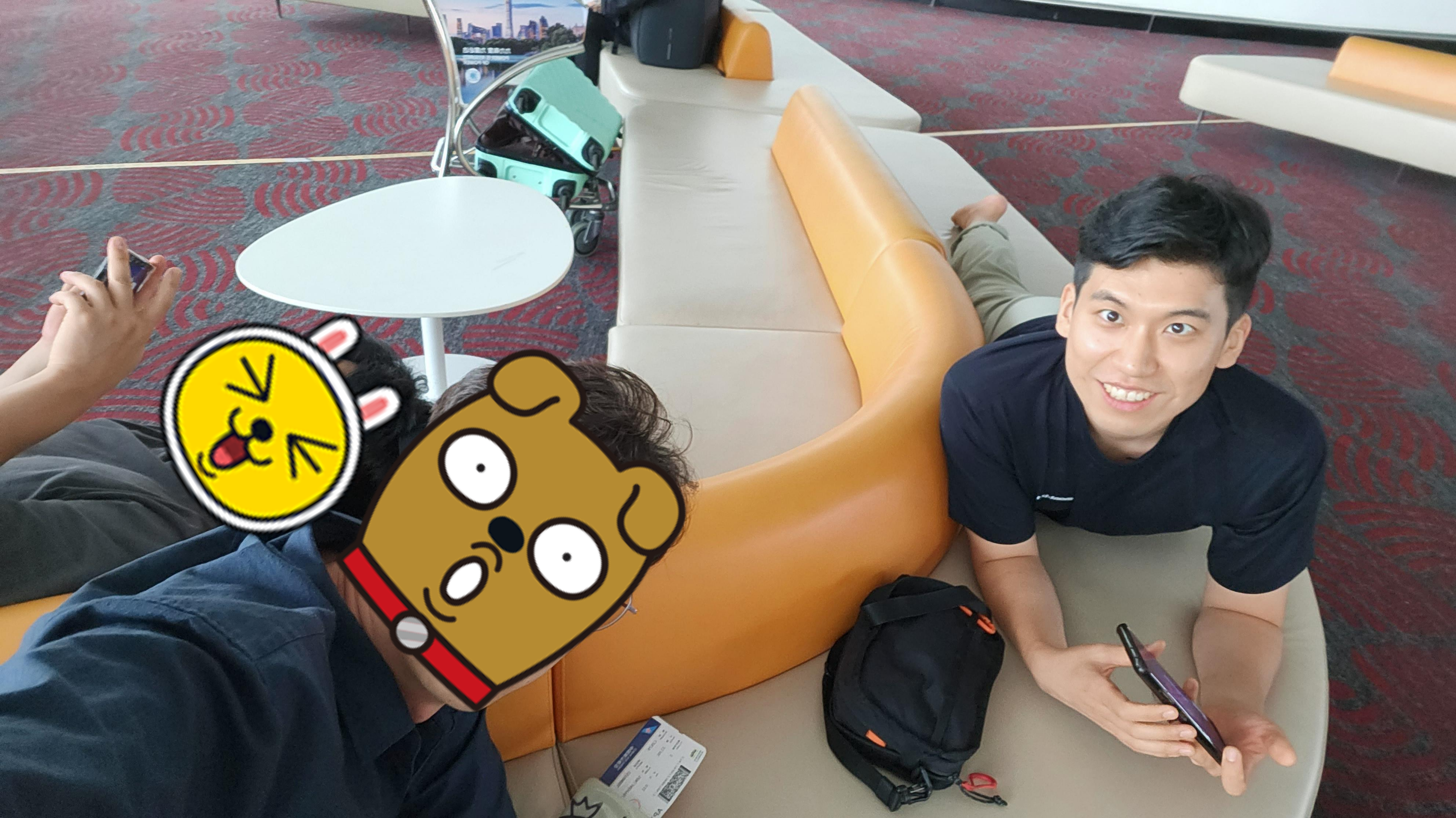 커피한잔하면서 이런저런 잡담을 하고 자 드디어 비행기 탑승! 말로는 안설렌다~ 기대 안된다~ 하지만 사진 찍을 때 표정과 실제로는 누구보다 신난 나인 듯 ㅋㅋㅋ나머지는 이번 3주간의 여행을 함께할 YS와 JH다.