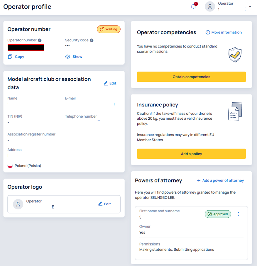 - 폴란드 항공청(https://drony.gov.pl/)에서 UAS Operator 등록